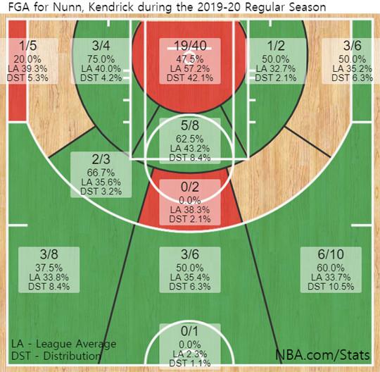 #2019-2020시즌 정규리그 켄드릭 넌 야투성공률 분포도(*4일 기준)
