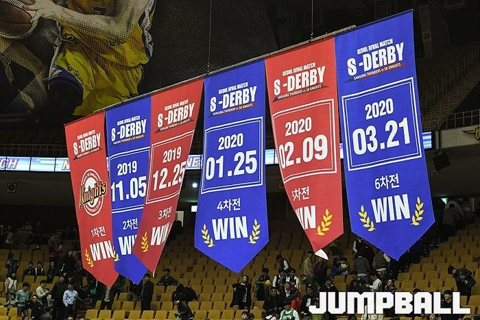 [점프볼=잠실/유용우 기자] 05일 잠실실내체육관에서 열린 '2019~2020 현대모비스 프로농구' 서울 삼성과 서울 SK의 S-더비 경기, SK가 74-71로 삼성에 승리하였다.