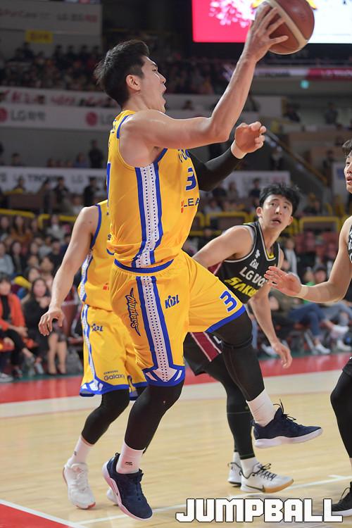 08일 창원실내체육관에서 열린 '2019~2020 현대모비스 프로농구' 창원 LG 와 서울 삼성 의 경기, 삼성 김준일이 라인아웃되는 공을 잡아 패스를 해주고있다.