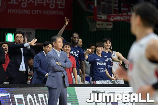 [JB포토] 역전 3점슛에 환호하는 모비스 벤치!