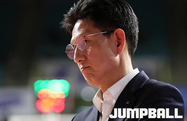 [점프볼=인천/백승철 기자] 10일 인천삼산실내체육관에서 '2019-2020 현대모비스 프로농구' 인천 전자랜드와 부산 KT의 경기가 열렸다. KT 서동철 감독이 2쿼터 종료 후 고개를 숙인 채 코트를 빠져 나가고 있다.