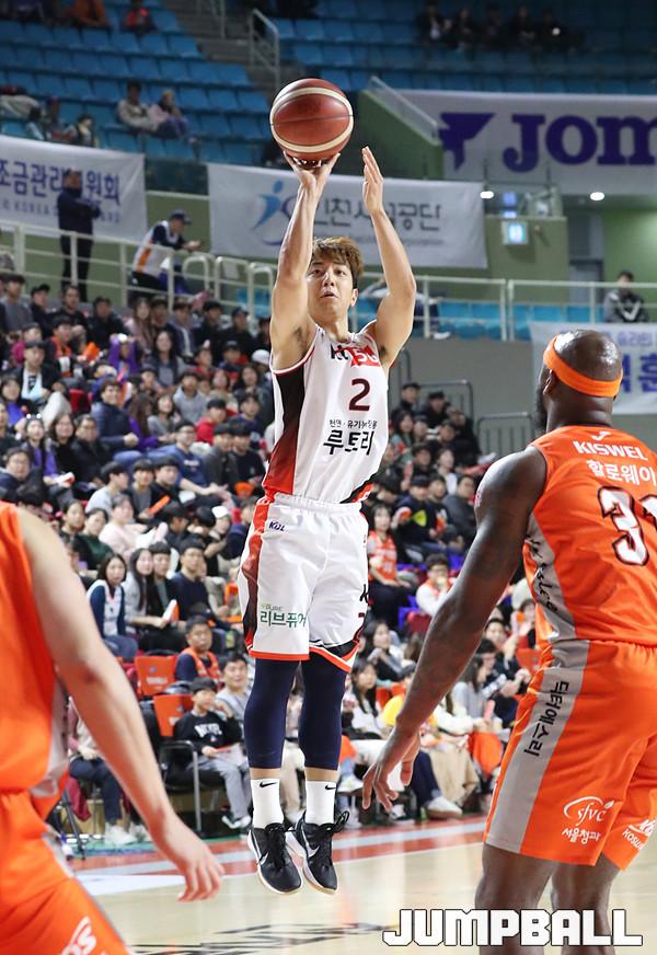 [점프볼=인천/백승철 기자] 10일 인천삼산실내체육관에서 '2019-2020 현대모비스 프로농구' 인천 전자랜드와 부산 KT의 경기가 열렸다. KT 허훈이 슛을 시도하고 있다.