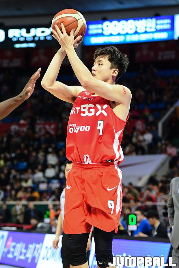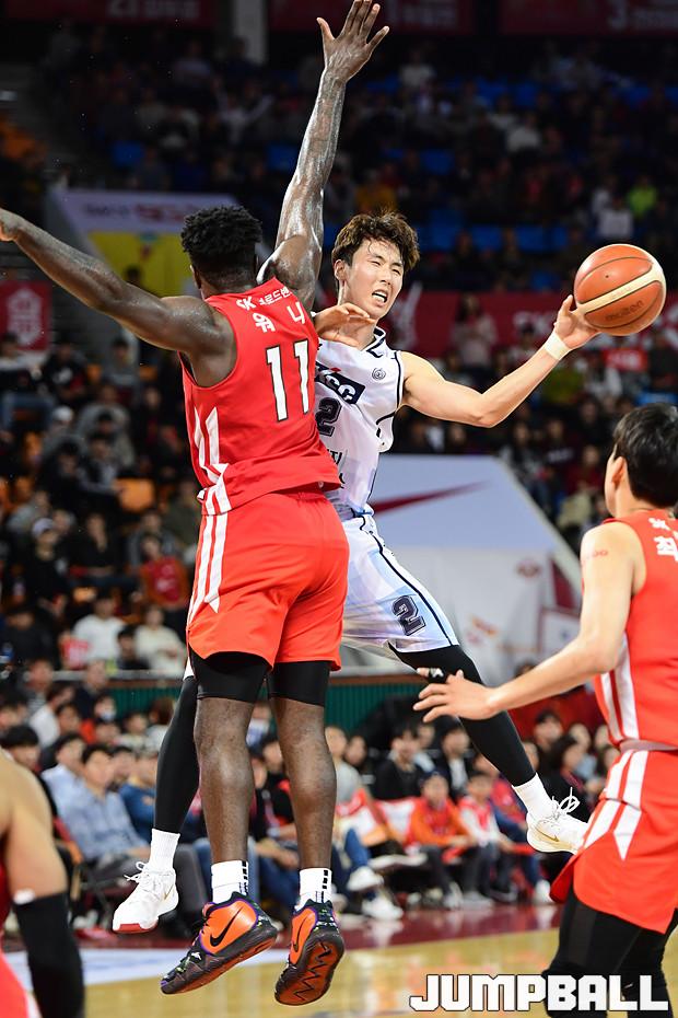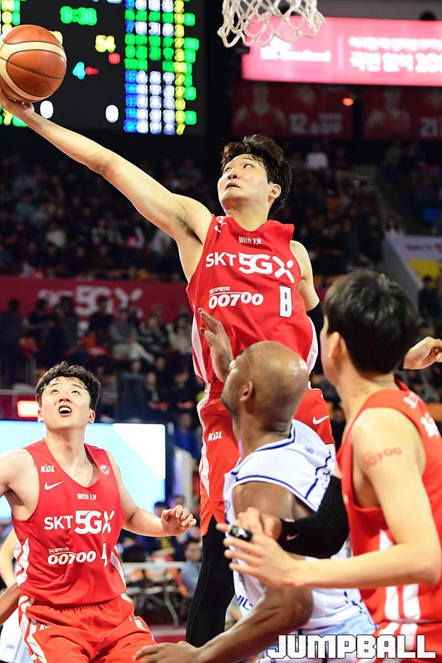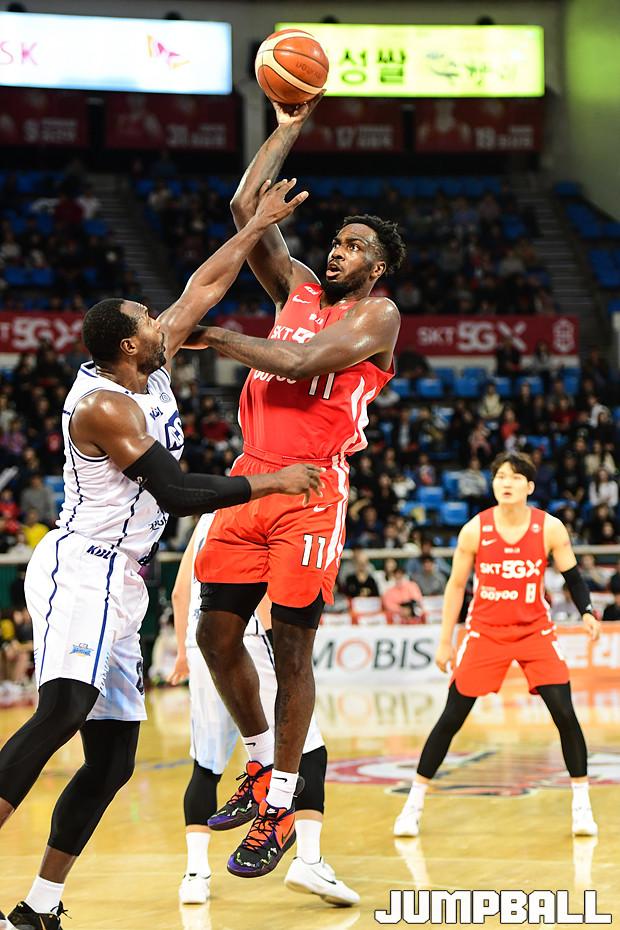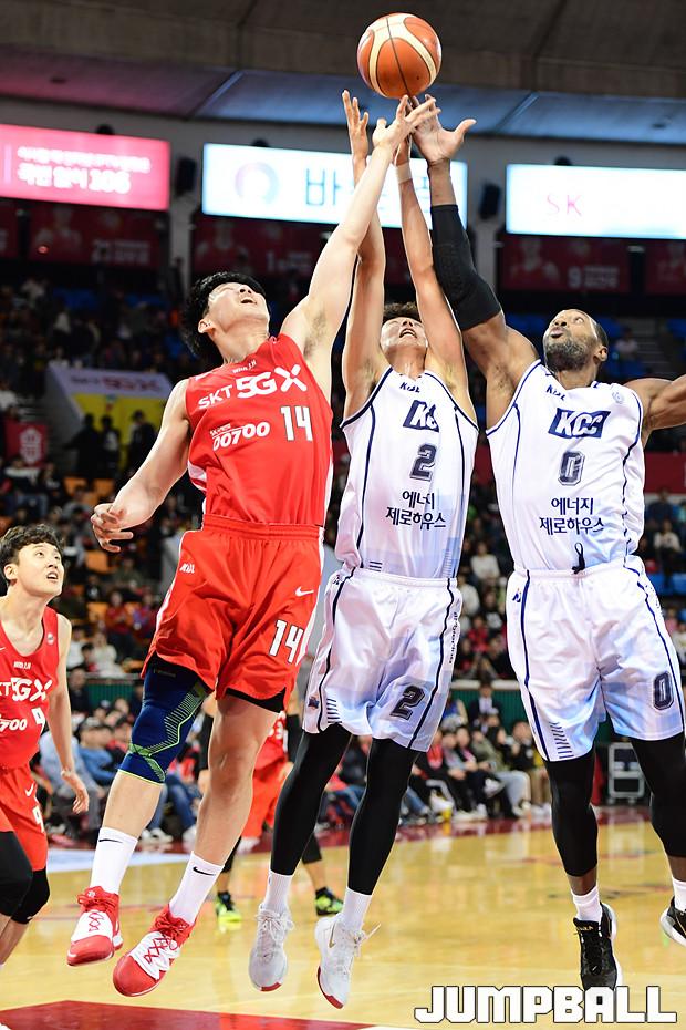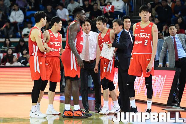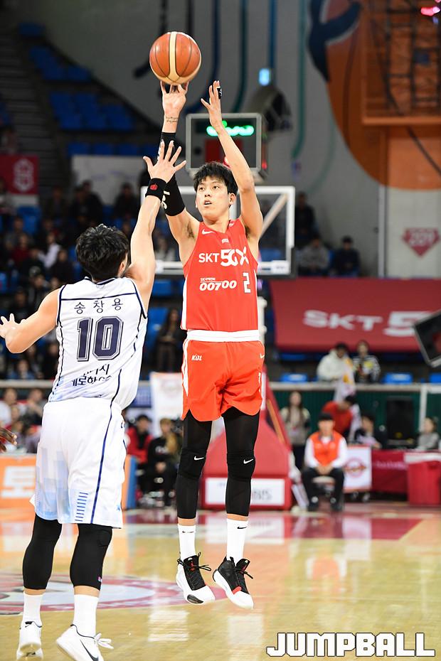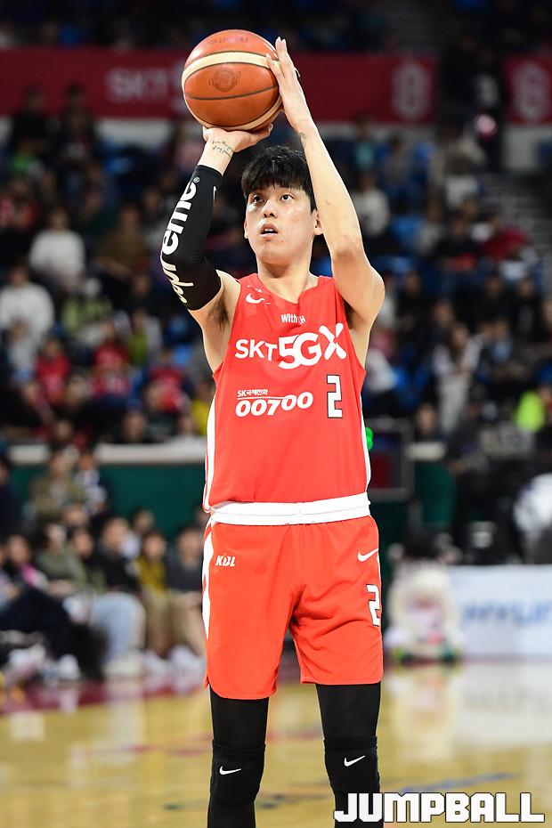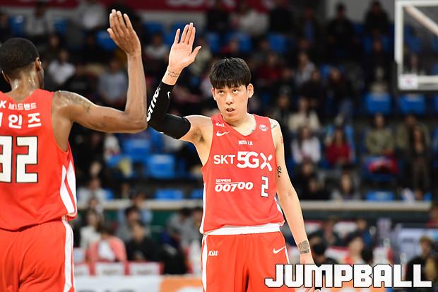 [점프볼=잠실학생/박상혁 기자] 10일 잠실학생체육관에서 열린 '2019-2020 현대모비스 프로농구' 서울 SK와 전주 KCC의 경기, 서울 SK가 연장전까지 가는 혈투끝에 전주 KCC에 79대 74로 승리하였다. SK와 KCC 경기 화보