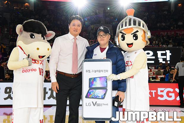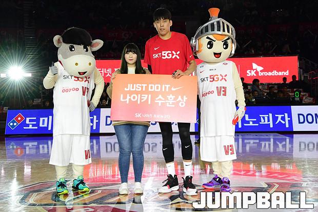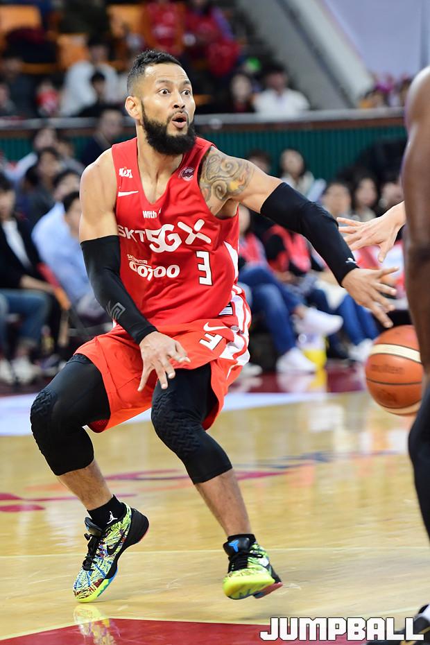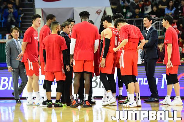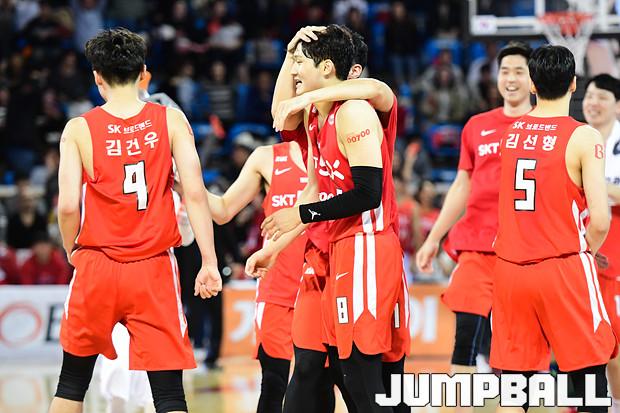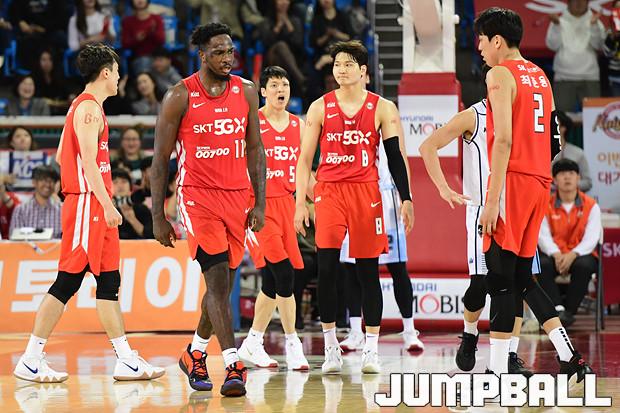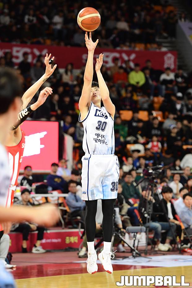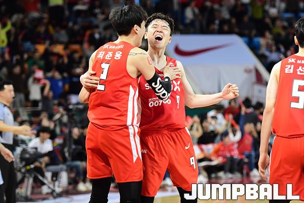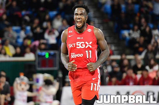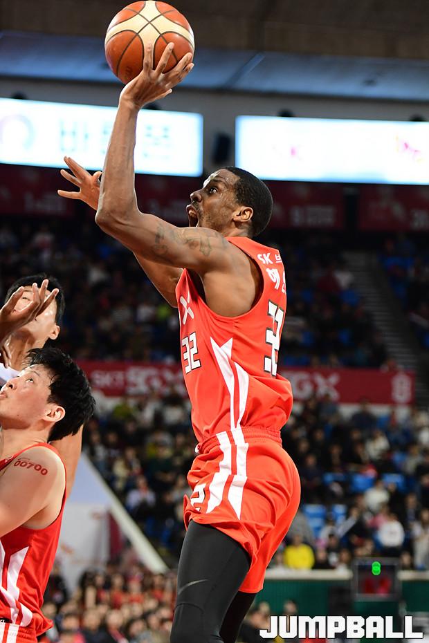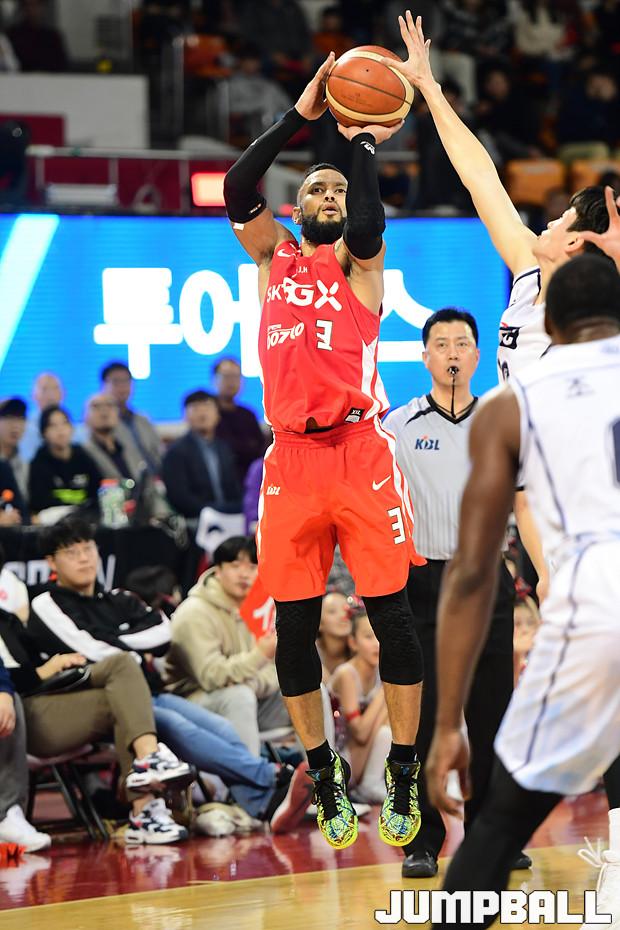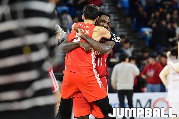 [점프볼=잠실학생/박상혁 기자] 10일 잠실학생체육관에서 열린 '2019-2020 현대모비스 프로농구' 서울 SK와 전주 KCC의 경기, 서울 SK가 연장전까지 가는 혈투끝에 전주 KCC에 79대 74로 승리하였다. SK와 KCC 경기 화보