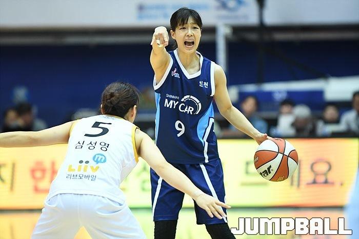 [점프볼=인천/유용우 기자] 27일 인천 도원체육관에서 열린 '하나원큐 2019-2020 여자프로농구' 인천 신한은행과 청주 KB의 경기, 신한은행 이경은이 작전을 지시하고 있다.