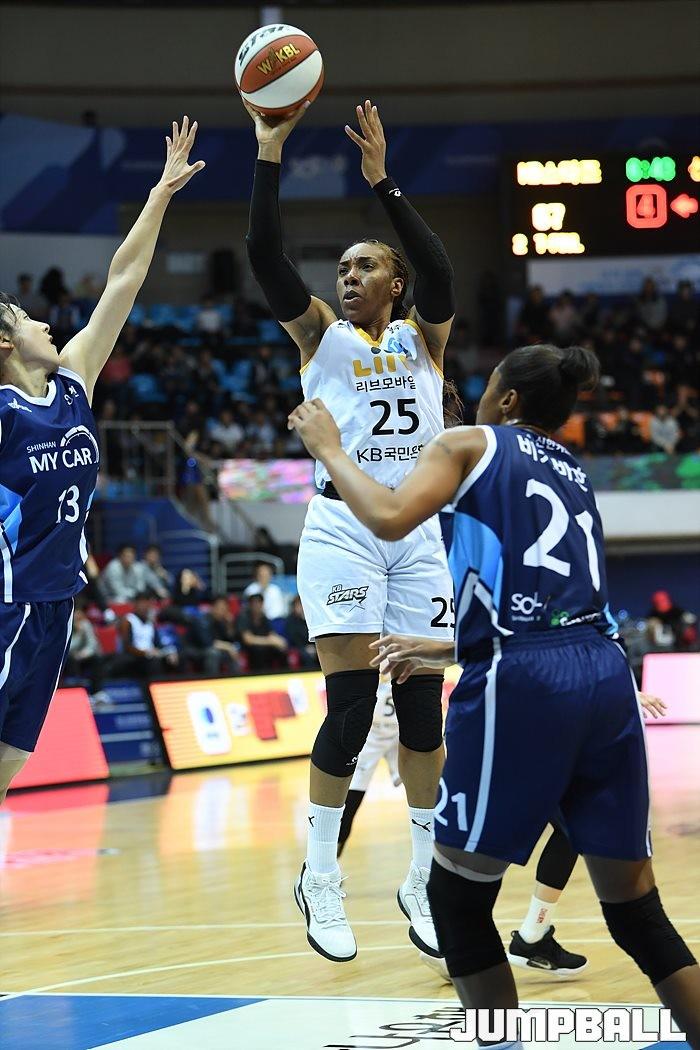 [점프볼=인천/유용우 기자] 27일 인천 도원체육관에서 열린 '하나원큐 2019-2020 여자프로농구' 인천 신한은행과 청주 KB스타즈의 경기, KB 쏜튼이 공격을 시도하고 있다.