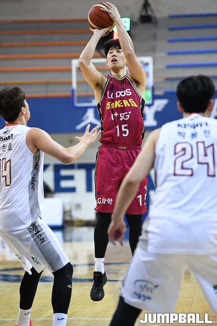 [점프볼=신촌/유용우 기자] 28일 신촌 연세대체육관에서 열린 '2019-2020 KBL D-리그' 창원 LG와 인천 전자랜드의 경기, LG 주지훈이 중거리슛을 시도하고 있다.