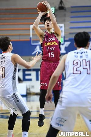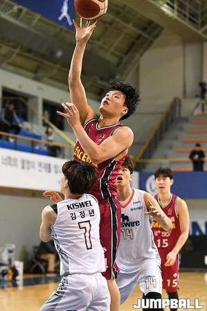 [점프볼=신촌/유용우 기자] 28일 신촌 연세대체육관에서 열린 '2019-2020 KBL D-리그' 창원 LG와 인천 전자랜드의 경기, LG 한상혁이 돌파하며 레이업을 올리고 있다.