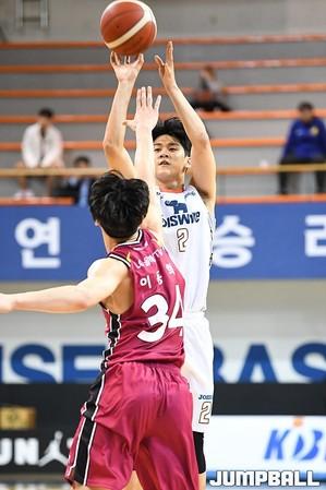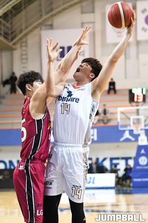 [점프볼=신촌/유용우 기자] 28일 신촌 연세대체육관에서 열린 '2019-2020 KBL D-리그' 서울 SK와 전주 KCC의 경기, KCC 김진용이 점프볼로 공격권을 가져가고 있다.