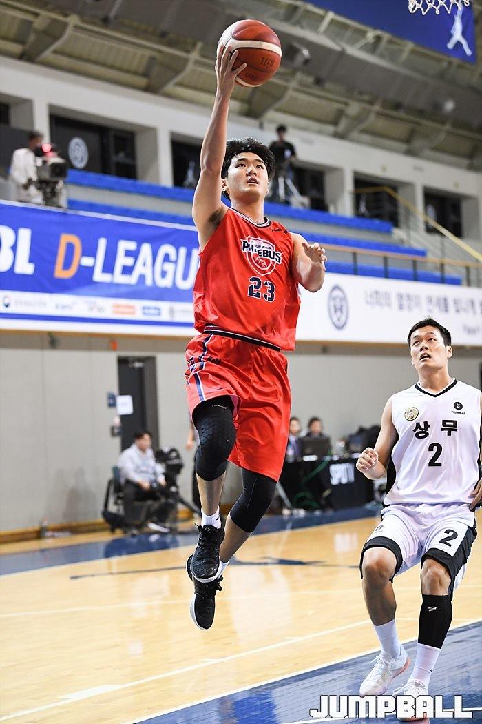 [점프볼=신촌/유용우 기자] 28일 신촌 연세대체육관에서 열린 '2019-2020 KBL D-리그' 상주 상무와 울산 현대모비스의 경기, 현대모비스 천재민이 속공 레이업을 올리고 있다.