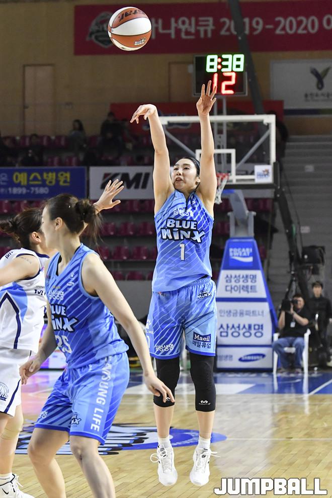 [점프볼=용인/홍기웅 기자] 9일 용인실내체육관에서 열린 '하나원큐 2019-2020 여자프로농구' 삼성생명과 신한은행의 경기. 삼성생명 박하나가 3점슛을 던지고 있다.