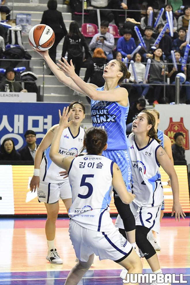 [JB포토] 삼성생명 윤예빈 '3명의 수비 사이에서 올리는 레이업'
