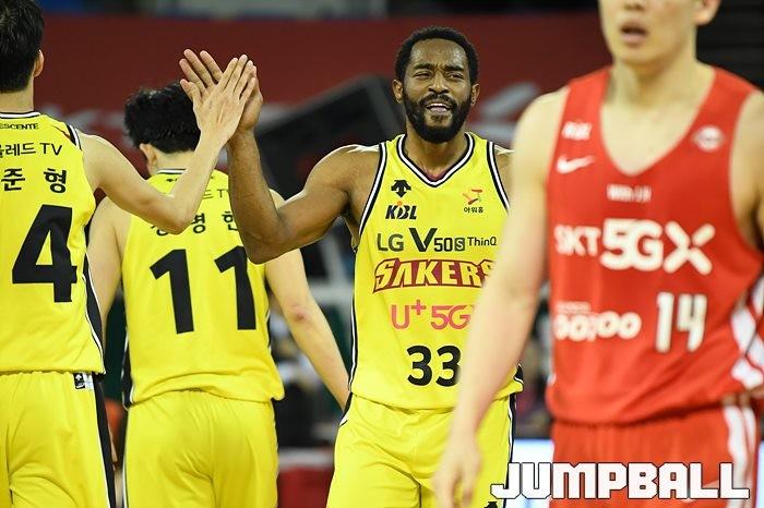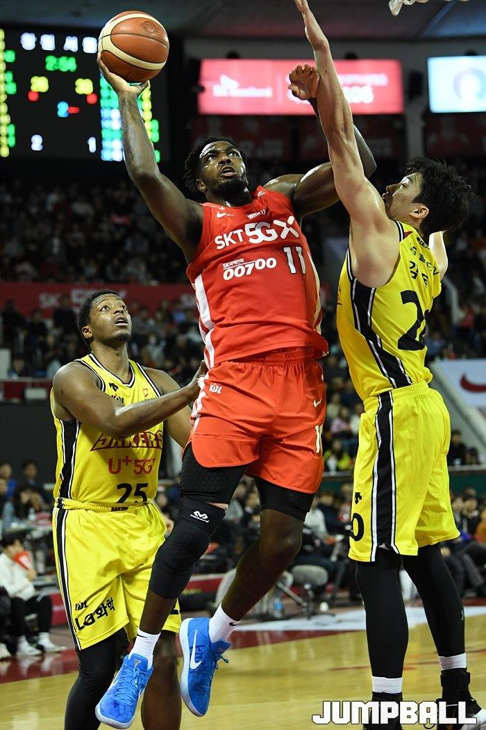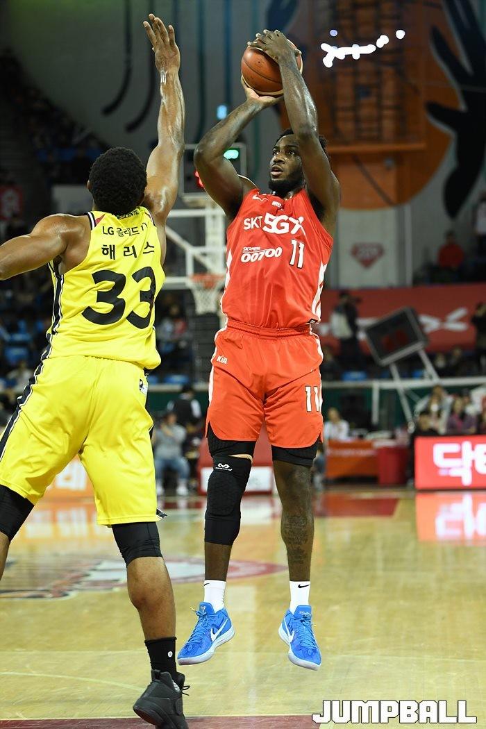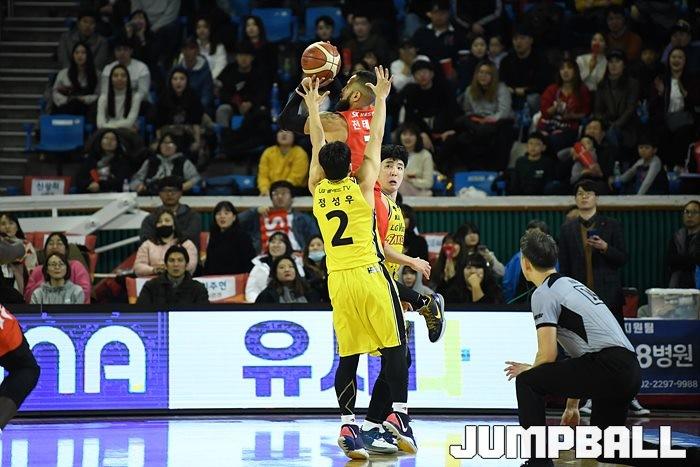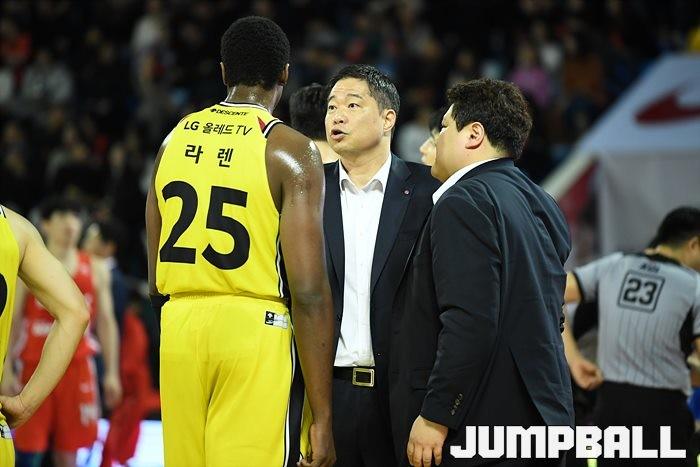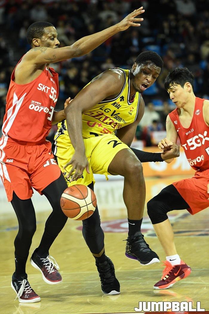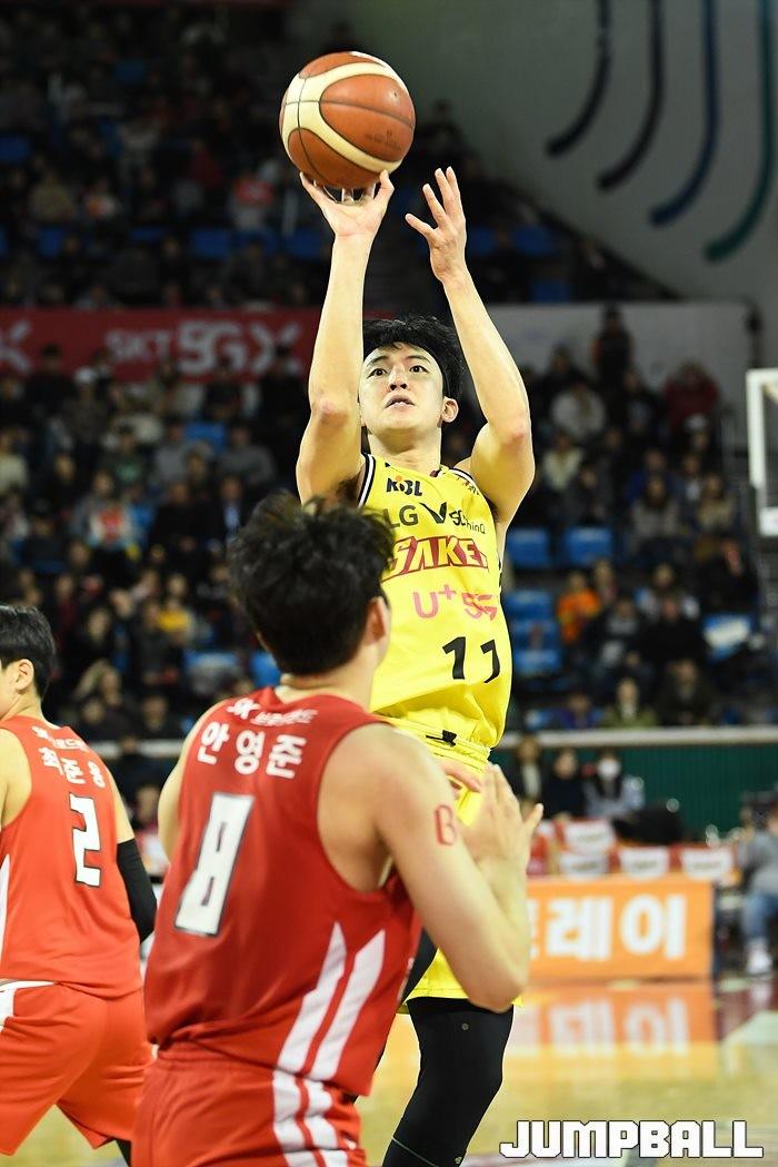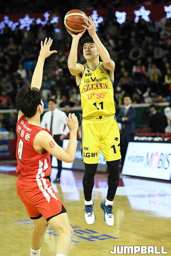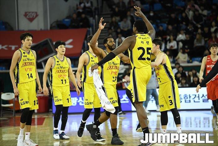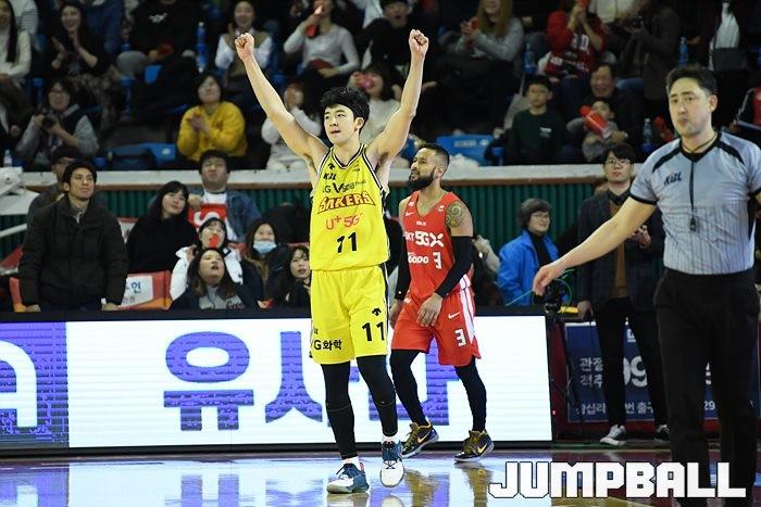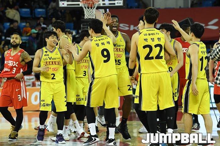 [점프볼=잠실/유용우 기자] 창원 LG는 4일 잠실학생체육관에서 열린 2019-2020 현대모비스 프로농구 서울 SK와의 4라운드 원정경기에서 76-73으로 승리했다.
