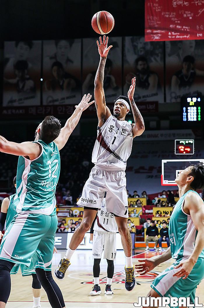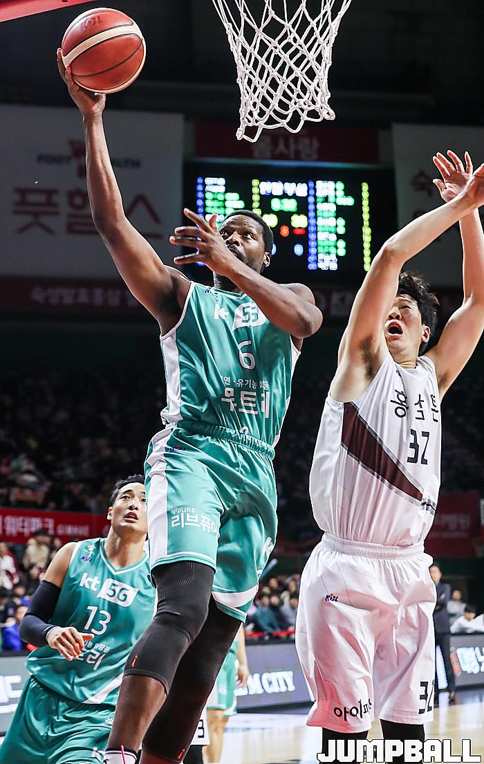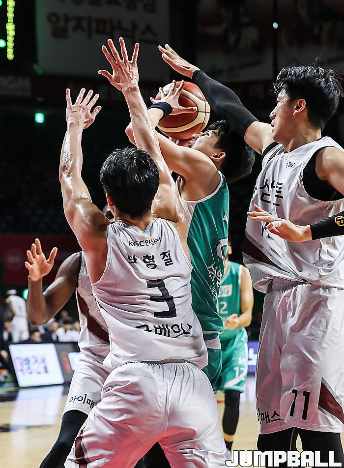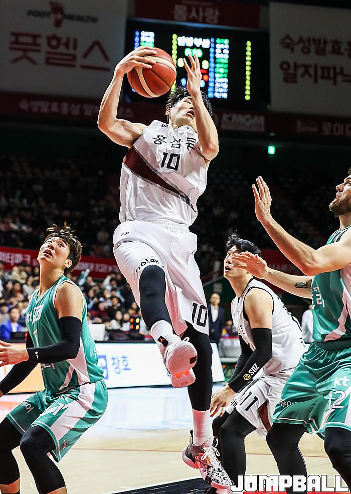 KGC인삼공사가 맥컬러와 문성곤의 활약으로 4연승을 달리며 공동 1위에 올랐다. KT는 홈 6연승에 실패했다. 안양 KGC인삼공사는 4일 부산사직실내체육관에서 열린 2019~2020 현대모비스 프로농구 부산 KT와 원정 경기에서 85-76으로 이겼다. 4연승을 질주한 KGC인삼공사는 19승 10패를 기록, 이날 창원 LG에게 패한 서울 SK와 공동 1위로 어깨를 나란히 했다.
