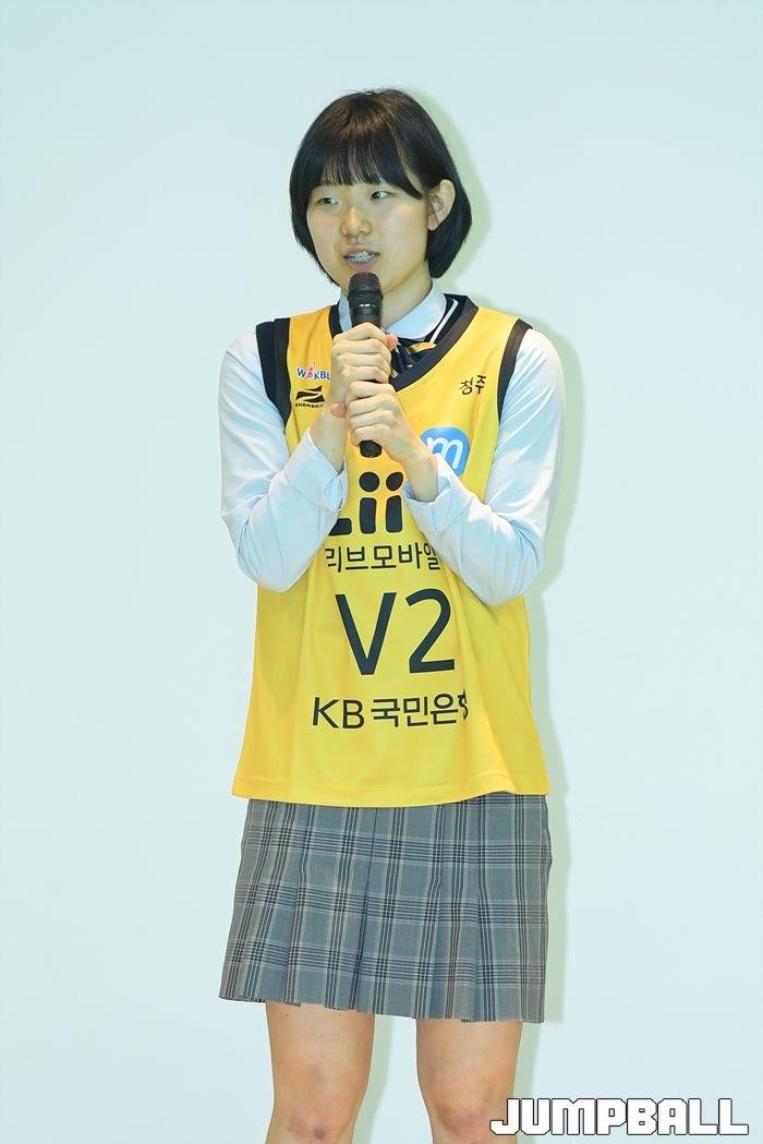 [점프볼=인천/유용우 기자] 9일 오전 인천 서구 하나글로벌캠퍼스에서 열린 ‘한국여자농구연맹(WKBL) 2019-2020시즌 신입 선수 선발회, 1라운드 1순위인 KB스타즈는 상주여고 허예은(19, 165cm)을 지명했다.