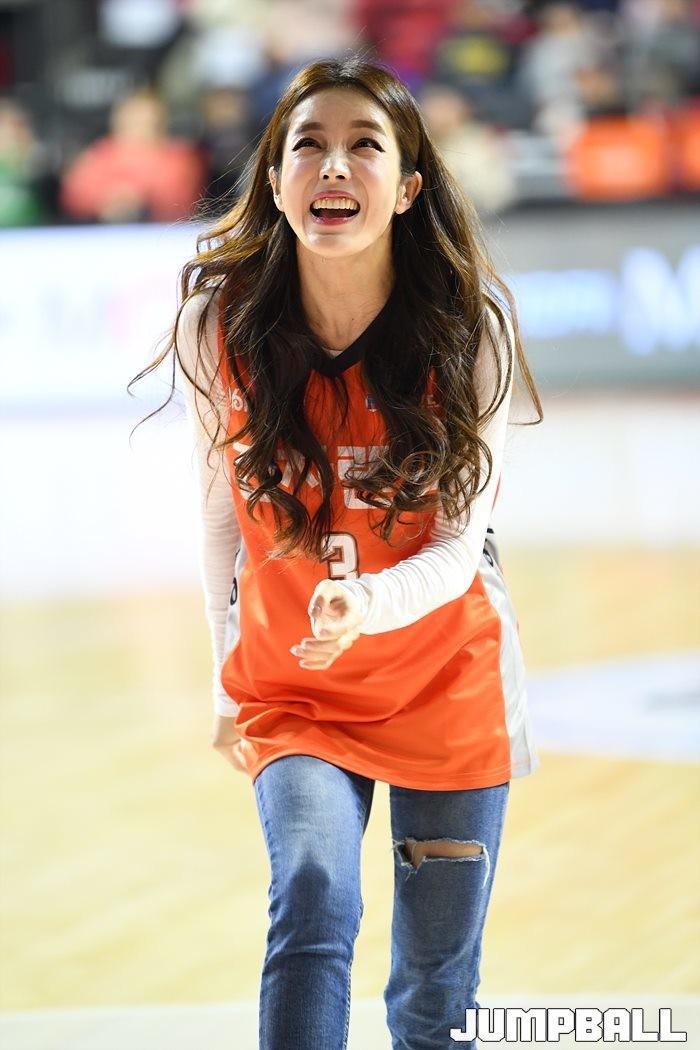 [점프볼=인천/유용우 기자] 10일 인천 삼산체육관에서 열린 '2019-2020 현대모비스 프로농구' 인천 전자랜드와 원주 DB의 경기, 미스트롯 출신 트로트 가수 박성연이 시투를 하고 있다.