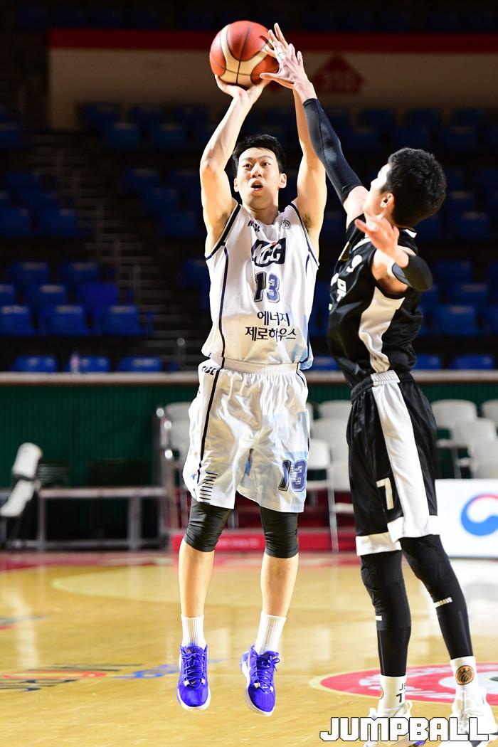 [점프볼=잠실학생/박상혁 기자] 13일 잠실학생체육관에서 열린 '2019-2020 KBL D-리그' 상무와 전주 KCC의 경기, KCC 김지후가 슛을 시도하고 있다.