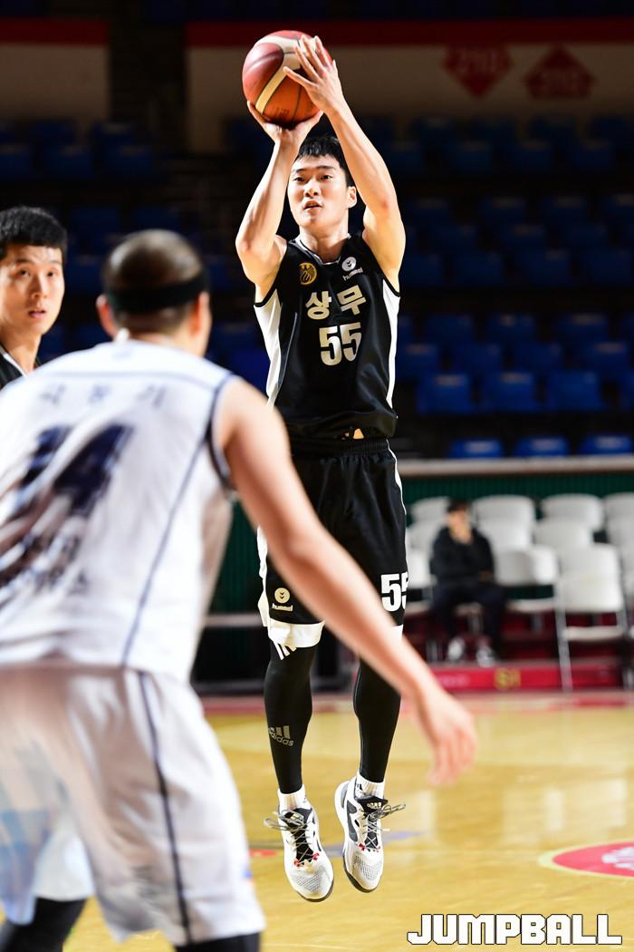 [점프볼=잠실학생/박상혁 기자] 13일 잠실학생체육관에서 열린 '2019-2020 KBL D-리그' 상무와 전주 KCC의 경기, 상무 김진유가 슛을 시도하고 있다.