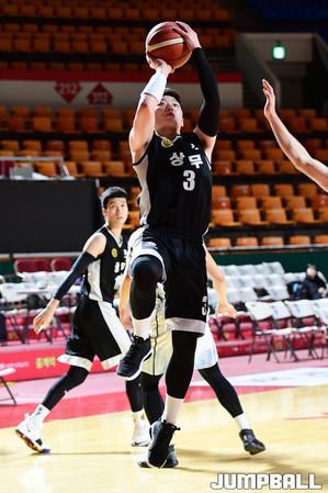 [점프볼=잠실학생/박상혁 기자] 13일 잠실학생체육관에서 열린 '2019-2020 KBL D-리그' 상무와 전주 KCC의 경기, 상무 박세진이 덩크슛을 시도하고 있다.