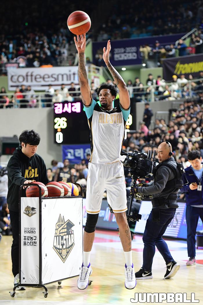 [점프볼=인천/점프볼 사진부] 19일 인천삼산월드체육관에서 열린 2019-2020 현대모비스 프로농구 올스타전, 3점슛 콘테스트 결승전 화보