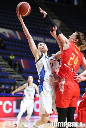 대한민국 여자농구 대표팀은 8일 세르비아 베오그라드 알렉산드라 니코리치 홀에서 열린 2020 도쿄올림픽 여자농구 최종예선 C조 영국과의 경기. 한국대표팀의 야전사령관 박혜진이 손가락을 들어 동료들에게 작전을 지시하고 있다.