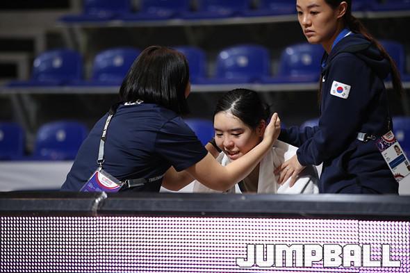 [JB포토] 힘들어 하는 박지수를 달래는 한국팀 트레이너