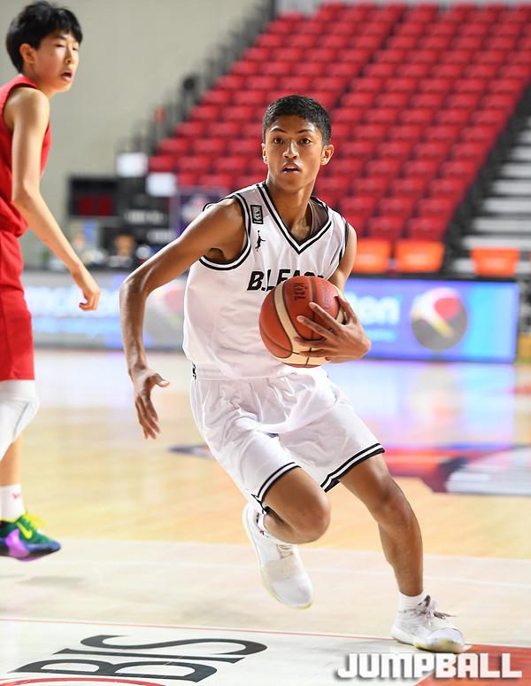[점프볼=인천/문복주 기자] 17일 인천삼산월드체육관에서 열린 2020 KBL 유스 챔피언쉽 결승전으로 일본 B.LEAGUE U15와 휘문중의 경기, B.LEAGUE U15 숀류 야에가시 션이 골밑으로 돌진하고 있다.