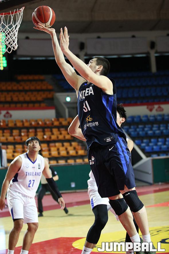 23일 잠실학생체육관에서 열린 국제농구연맹(FIBA) 아시아컵 2021 예선 한국과 태국의 A조 두 번째 경기. 한국 대표팀의 장재석이 높이와 힘을 이용해 골밑에서 득점을 만들어 내고 있다.