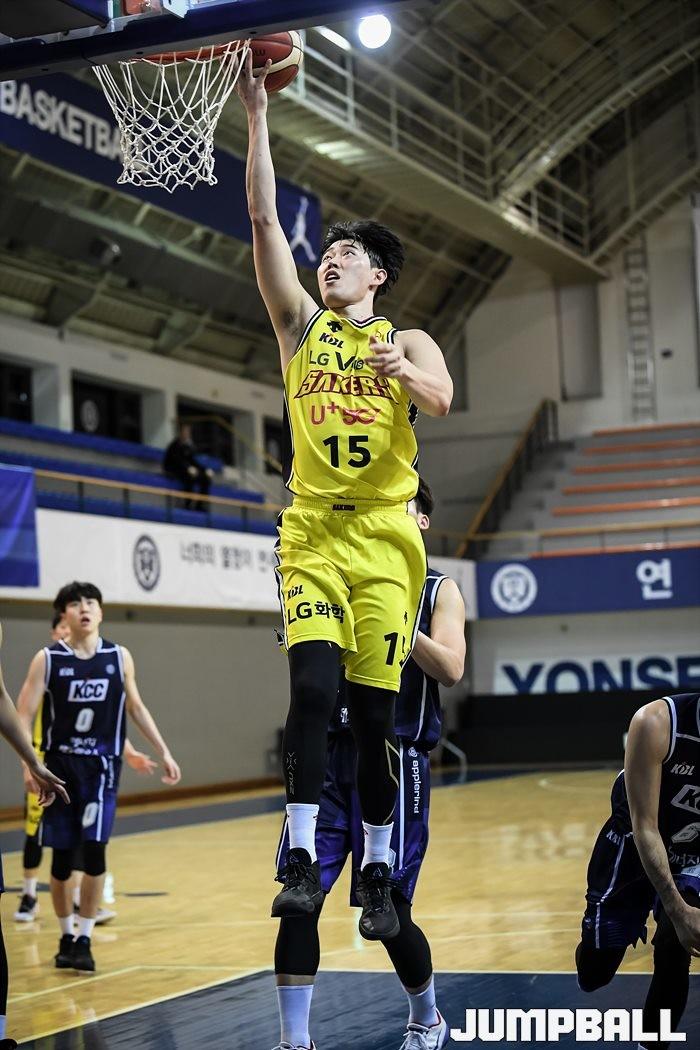 [점프볼=신촌/유용우 기자] 24일 연세대학교 신촌캠퍼스 체육관에서 열린 2019-2020 KBL D-리그 LG와 KCC의 경기, LG 주지훈이 레이업 득점을 올리고 있다.