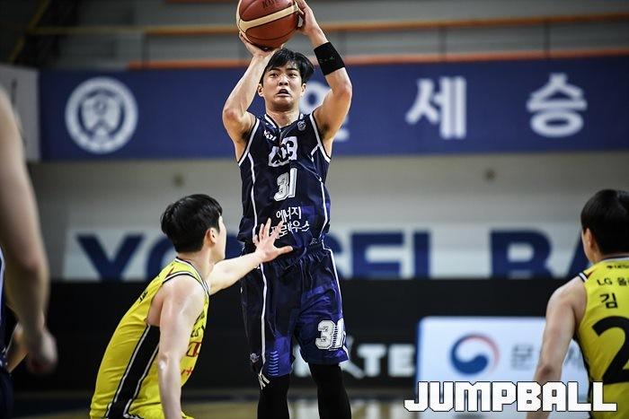 [점프볼=신촌/유용우 기자] 24일 연세대학교 신촌캠퍼스 체육관에서 열린 2019-2020 KBL D-리그 LG와 KCC의 경기, KCC 이진욱이 슛을 시도하고 있다.