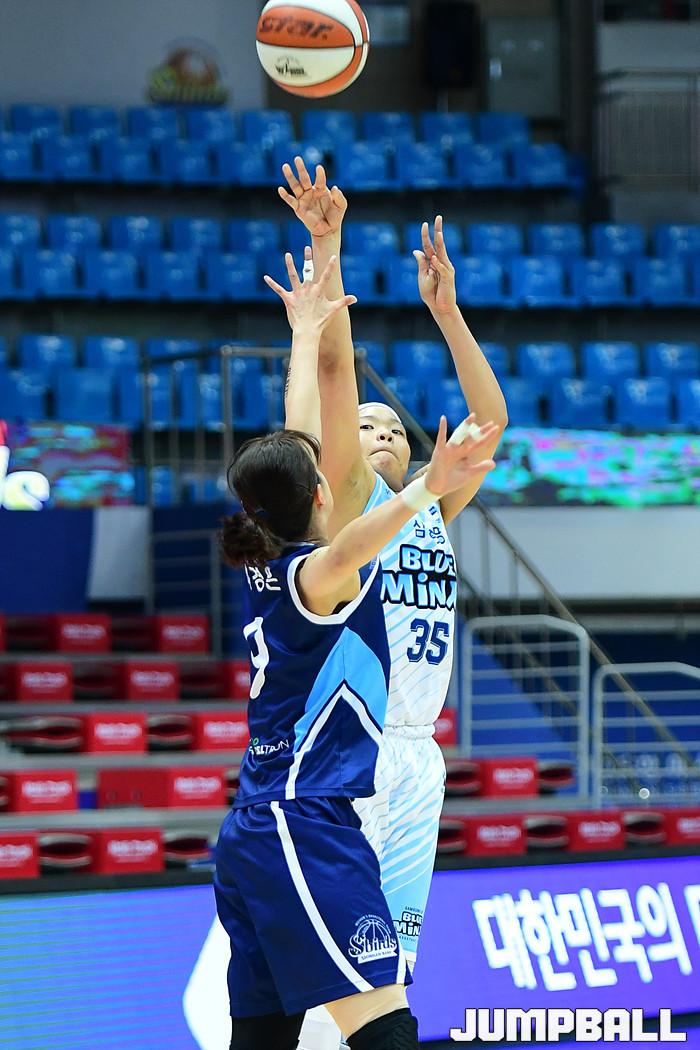[점프볼=인천/박상혁 기자] 4일 인천도원실내체육관에서 열린 '하나원큐 2019-2020 여자프로농구' 신한은행과 삼성생명의 경기, 삼성생명 김한별이 슛을 시도하고 있다.