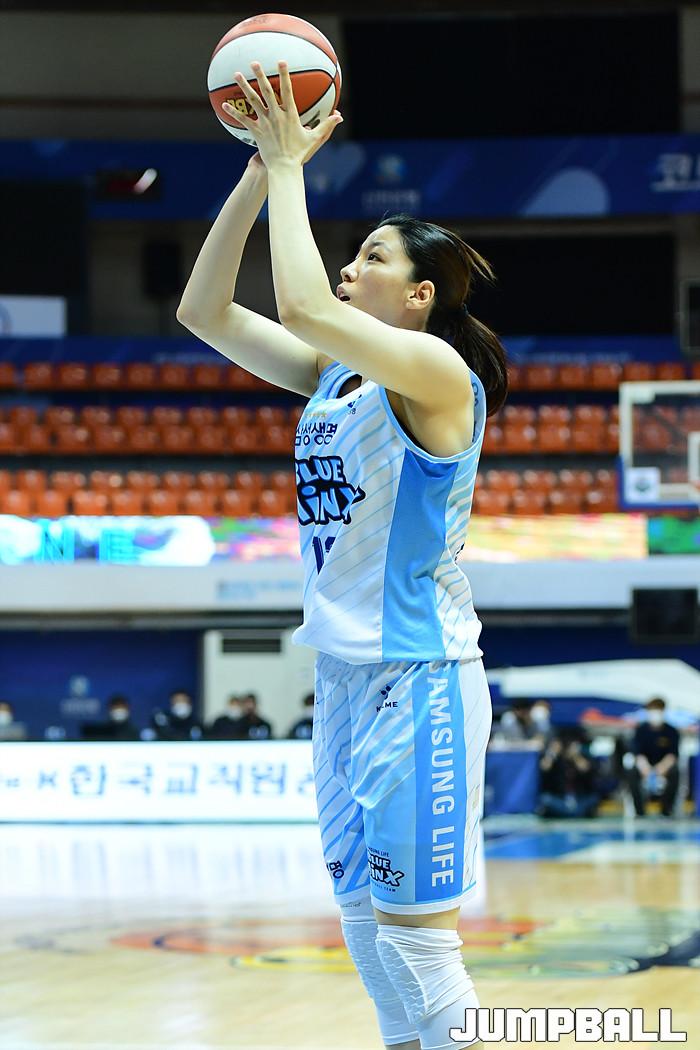 [점프볼=인천/박상혁 기자] 4일 인천도원실내체육관에서 열린 '하나원큐 2019-2020 여자프로농구' 신한은행과 삼성생명의 경기, 삼성생명 양인영이 점프슛을 시도하고 있다.