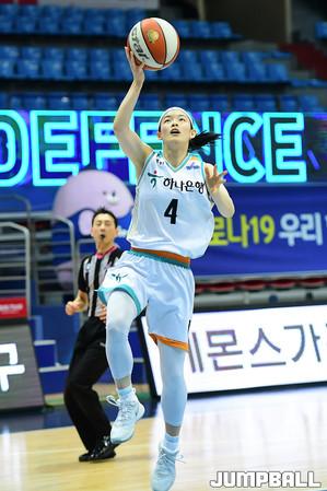 [점프볼=인천/박상혁 기자] 9일 인천도원체육관에서 열린 '하나원큐 2019-2020 여자프로농구' 신한은행과 하나은행의 경기, 하나은행 마이샤가 슛을 시도하고 있다.