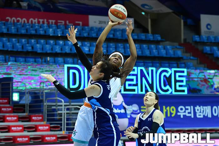 [점프볼=인천/박상혁 기자] 9일 인천도원체육관에서 열린 '하나원큐 2019-2020 여자프로농구' 신한은행과 하나은행의 경기, 하나은행이 인천에서 신한은행에 84대 79로 승리하였다. 신한은행과 하나은행 경기 화보.