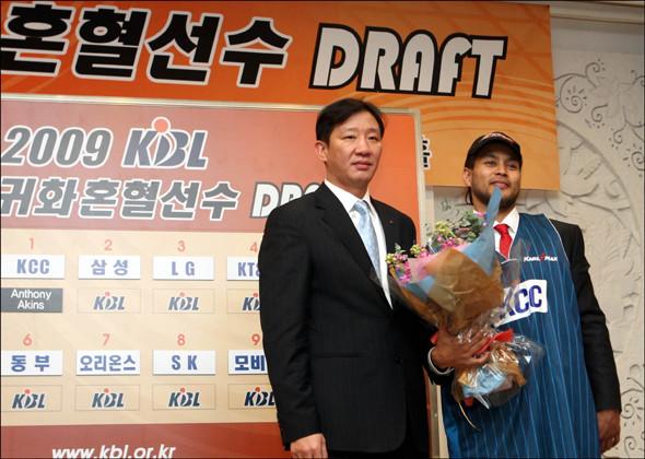 2009 귀화 혼혈선수 드래프트는 2009년 2월 2일 양재교육문화회관에서 열렸다. 모두의 관심사는 두 남자에게 집중됐고 전체 1순위의 주인공은 당시 그리스 리그에서 뛰었던 애킨스가 차지했다.