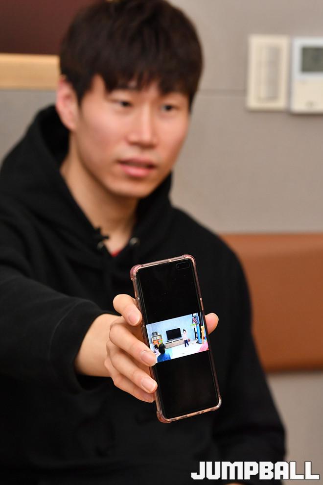 [점프볼=안양/홍기웅 기자] KBL 19-20 시즌종료를 발표하기전인 지난 18일 안양실내체육관에서 시즌 복귀 준비중이던 오세근을 만나 인터뷰를 진행했다. 종료 발표전 진행했던 인터뷰에서 그의 이번 시즌에 대한 아쉬움 및 다짐을 들어볼 수 있었다. KGC 오세근이 코로나 바이러스로 인해 집에서 머물면서 그의 아이들의 재롱을 영상으로 담아 기자에게 웃으면서 보여주고 있다.