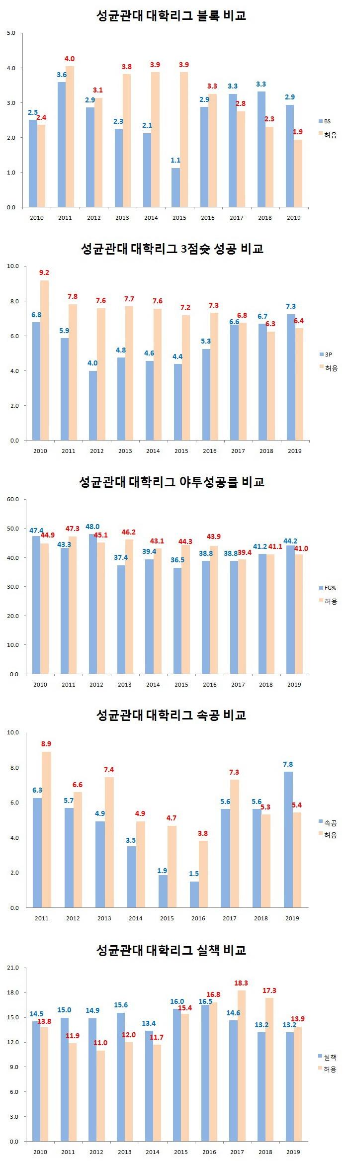 성균관대는 7년 연속 20%대에 머물고 있는 3점슛 성공률을 더 끌어올린다면 중상위권을 유지할 수 있을 것으로 예상된다.