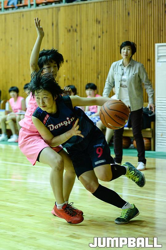 7일 광주 수피아여고체육관에서 열린 '2015 연맹회장기 전국남,녀중,고농구대회 여중부경기, 수피아여중과 동주여중의 경기, 동주여중 안주연이 돌파를 시도하고 있다.