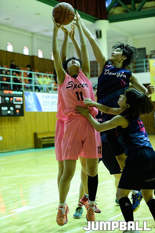 7일 광주 수피아여고체육관에서 열린 '2015 연맹회장기 전국남,녀중,고농구대회 여중부경기, 수피아여중과 동주여중의 경기, 수피아여중 박은혜가 리바운드 경합을 벌이고 있다.