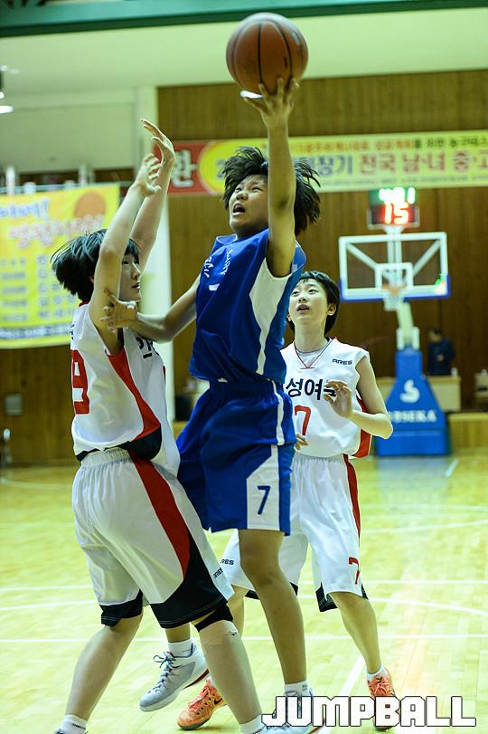 7일 광주 수피아여고체육관에서 열린 '2015 연맹회장기 전국남,녀중,고농구대회 여중부경기, 숭의여중과 인성여중의 경기, 숭의여중 박지현이 레이업을 올리고 있다.