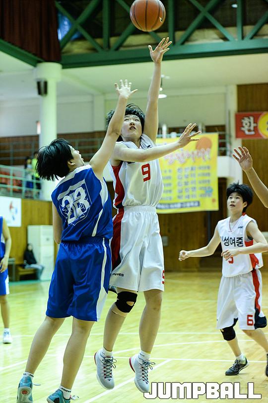 7일 광주 수피아여고체육관에서 열린 '2015 연맹회장기 전국남,녀중,고농구대회 여중부경기, 숭의여중과 인성여중의 경기, 인성여중 최세현이 슛을 시도하고 있다.