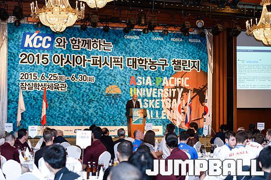 [점프볼=유용우 기자] 24일 서울 올림픽파크텔 올림피아홀에서 'KCC와 함께하는 2015 아시아 퍼시픽 대학농구 챌린지' 환영만찬이 열렸다. 이번 대회엔 4개국 5개팀(한국A, B, 캐나다, 일본, 러시아)이 출전한다.
