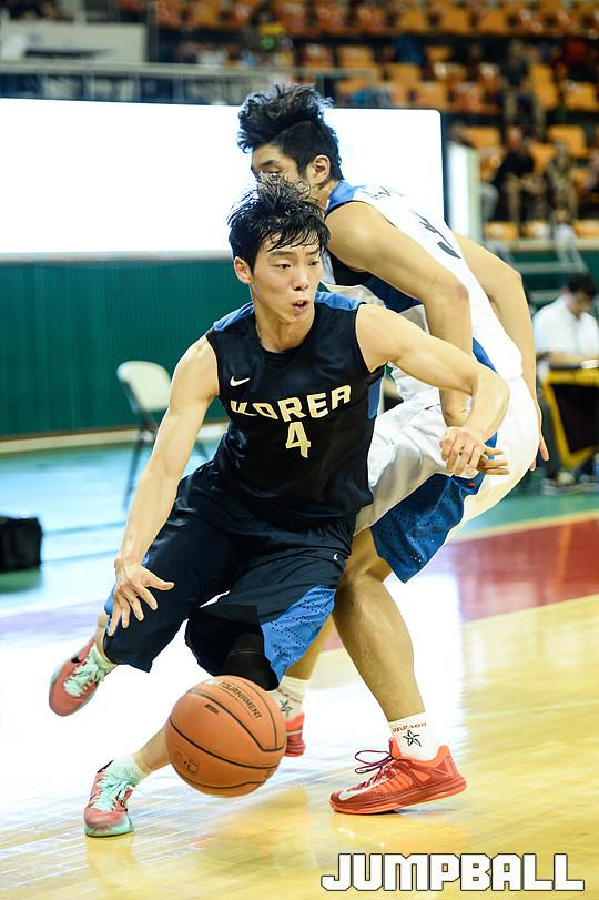 [점프볼=유용우 기자] 25일 잠실학생체육관에서 열린 'KCC와 함께하는 2015 아시아 퍼시픽 대학농구 챌린지' 1일차 경기, 한국 유니버시아드 대표팀과 대학농구 챌린지대표팀의 경기, 유니버시아드 대표팀 이재도가 수비를 뚫고 돌파하고 있다.