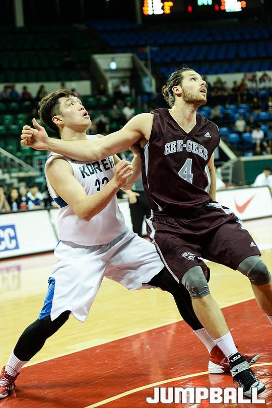[점프볼=유용우 기자] 26일 잠실학생체육관에서 열린 'KCC와 함께하는 2015 아시아 퍼시픽 대학농구 챌린지' 2일차 경기, 한국 유니버시아드 대표팀과 캐나다 오타와대학의 경기, 유니버시아드 대표팀 이승현이 캐나다 가브리엘과 자리싸움을 벌이고 있다.
