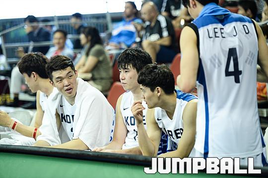 [점프볼=유용우 기자] 26일 잠실학생체육관에서 열린 'KCC와 함께하는 2015 아시아 퍼시픽 대학농구 챌린지' 2일차 경기, 한국 유니버시아드 대표팀과 캐나다 오타와대학의 경기, 유니버시아드 대표팀 이승현이 가비지타임에 벤치에 들어와 선수들과 이야기하고 있다.