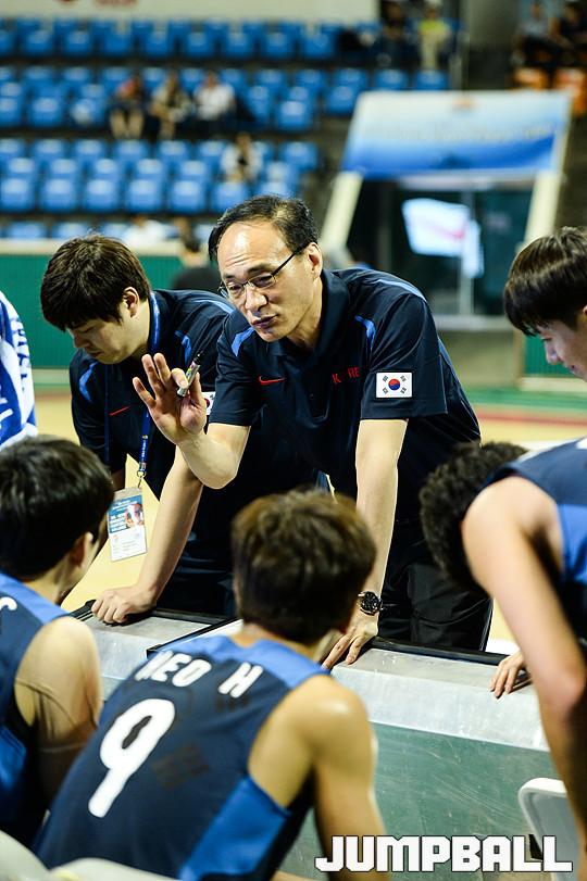 [점프볼=유용우 기자] 29일 잠실 학생체육관에서 열린 'KCC와 함께하는 2015 아시아 퍼시픽 대학농구 챌린지' 4일차 경기, 러시아 유니버시아드 대표팀과 한국 챌린지팀의 경기, 한국 챌린지팀 서대성 감독이 벤치에서 선수들을 지도하고 있다.