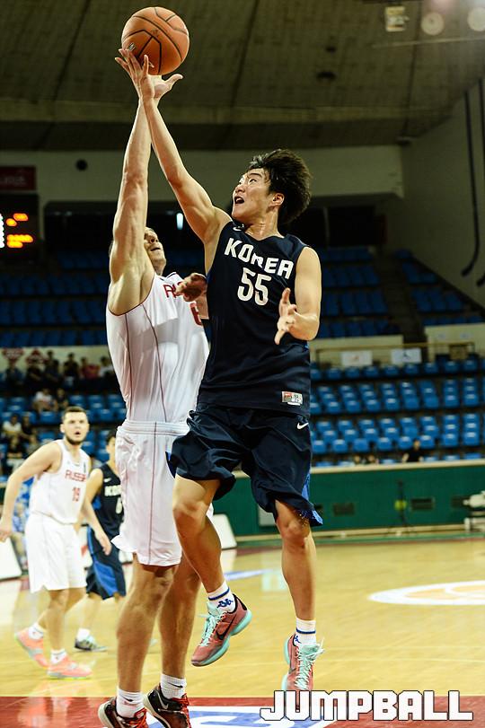 [점프볼=유용우 기자] 29일 잠실 학생체육관에서 열린 'KCC와 함께하는 2015 아시아 퍼시픽 대학농구 챌린지' 4일차 경기, 러시아 유니버시아드 대표팀과 한국 챌린지팀의 경기, 한국 챌린지팀 김진유가 레이업을 올리고 있다.
