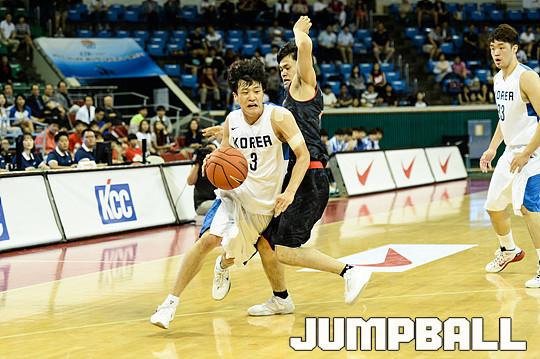 [점프볼=유용우 기자] 29일 잠실 학생체육관에서 열린 'KCC와 함께하는 2015 아시아 퍼시픽 대학농구 챌린지' 4일차 경기, 한국 유니버시아드 대표팀과 일본 유니버시아드 대표팀의 경기, 한국 유니버시아드 대표팀 허웅이 일본 수비를 뚫고 돌파를 시도하고 있다.