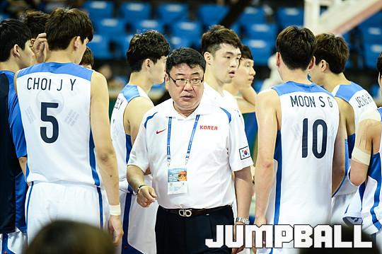 [점프볼=유용우 기자] 29일 잠실 학생체육관에서 열린 'KCC와 함께하는 2015 아시아 퍼시픽 대학농구 챌린지' 4일차 경기, 한국 유니버시아드 대표팀과 일본 유니버시아드 대표팀의 경기, 한국 유니버시아드 대표팀 이민현 감독이 선수들을 지도하고 있다.