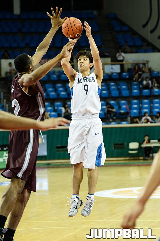 [점프볼=유용우 기자] 30일 잠실 학생체육관에서 열린 'KCC와 함께하는 2015 아시아 퍼시픽 대학농구 챌린지' 5일차 경기, 한국 챌린지팀과 캐나다 오타와대학의 경기, 한국 챌린지팀 허훈이 미들슛을 시도하고 있다.